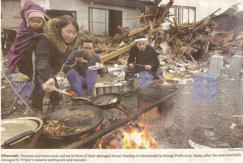 Whole world was watching in horror at the dramatic TV footage of tsunami waves leaving devastation in its wake in Japan late last week. Watching this footage was stark reminder of how vulnerable we are to the effects of an earthquake and subsequent tsunamis, as we in Indonesia tragically found out in 2006 in Aceh. The full extent of the disaster is still not yet realized and the road for recovery will be a long one for all those affected Japanese family. All Japanese those suffered took severe pains with humble and orderly manner without selfishness, over-emotion and over-reaction. Quite admirable and respactable are Japanese discipline and family spirit of helping each other during hard times (see photo at right). It will take time but surely Japanese people will come back and succeed more than before after this tragedy. If you want to donate money to help recovery efforts, you can do so at Google Crisis Response or through causes.com